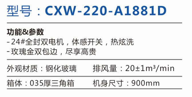 产品详情:半球抽油烟机a1881d 24叠全封闭双电机,体感开关,热炫洗 玫瑰金双磨边,尽显尊贵